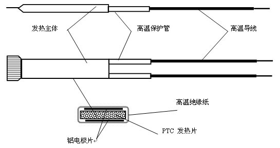 3) 有兩種絕緣結構,聚酰亞胺絕緣紙纏繞型和收縮套管收緊型。聚酰亞胺絕緣紙纏繞型表面溫度可選擇300℃以下,加熱元件的表面應當壓緊,防止表面電極不通電;收縮套管收緊型的使用溫度選擇為100℃以下,加熱元件的表面可以不壓緊。