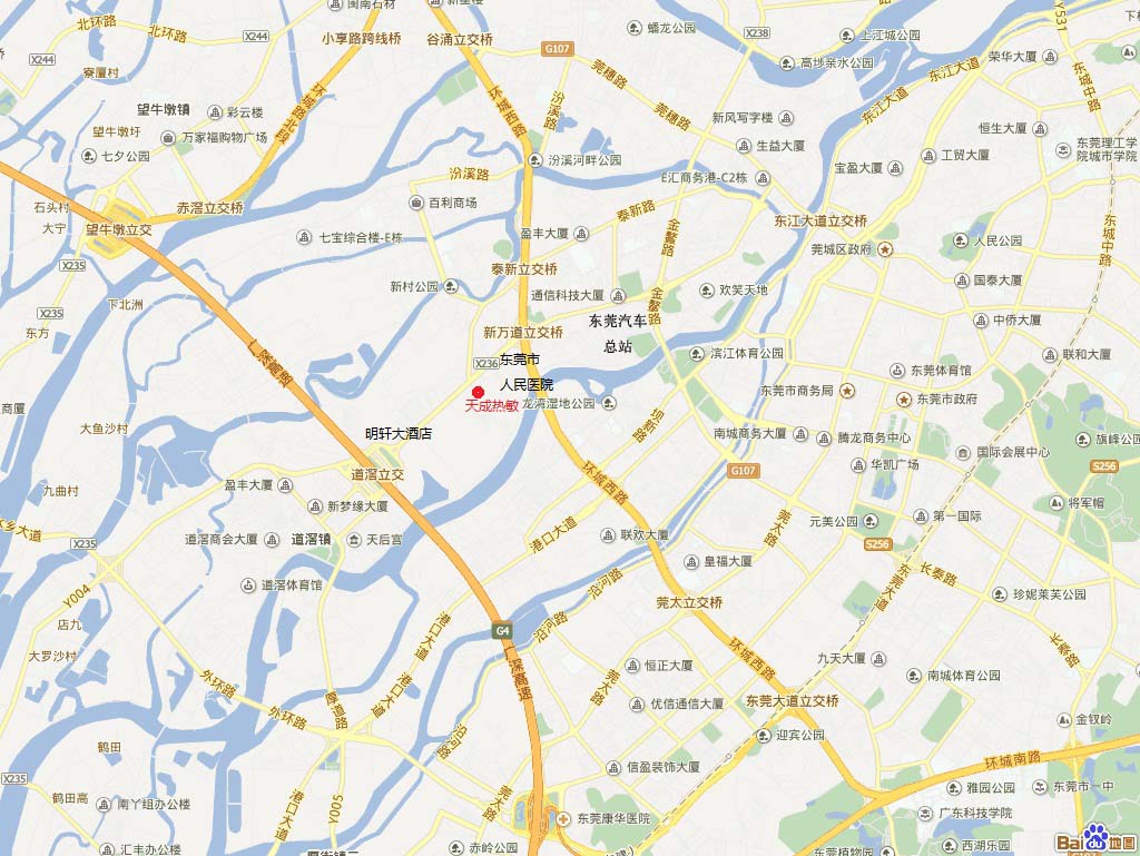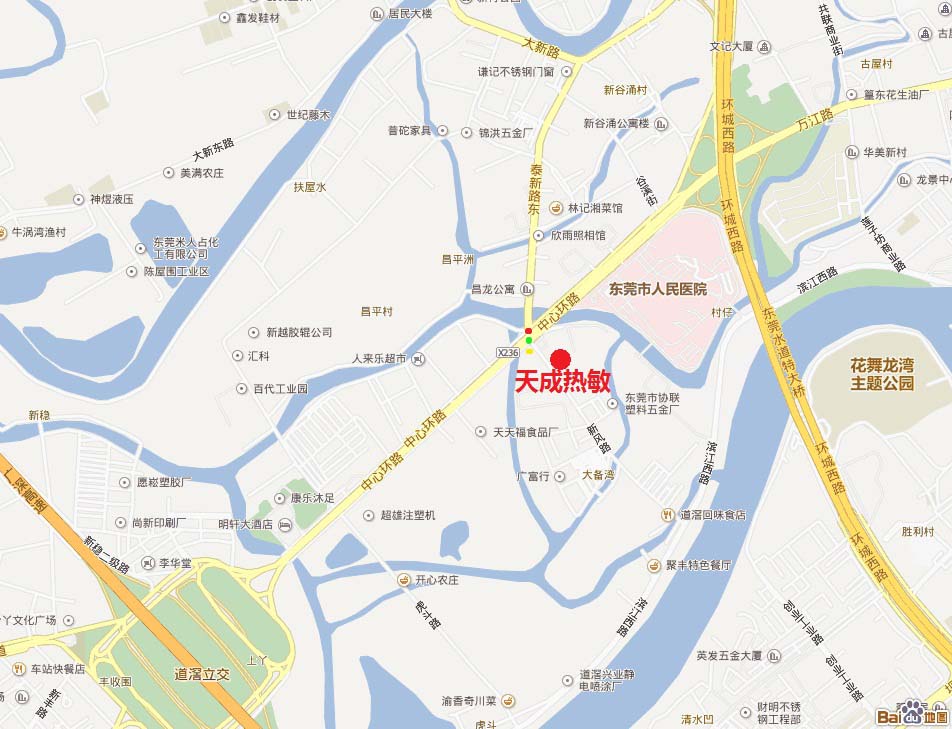 2)走107國道(莞長路),經(jīng)過長安、大嶺山,到牛山,進(jìn)入環(huán)城路,環(huán)城路(往西北萬江方向)。環(huán)城路萬江路出口(過環(huán)城路上的紅拱橋后即沿右邊道走),往道滘(G4/G15)方向,靠右邊輔道走,在昌平高架路前靠右邊走,不要上昌平高架路,紅燈轉(zhuǎn)左,進(jìn)入新風(fēng)路,前行100米即到(在新風(fēng)路左邊)。